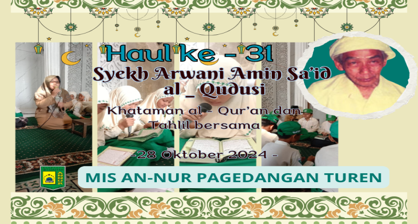 Turen, MIS ANNUR_Dalam rangka memperingati khaul Master Qur’an si mbah Syek KH. Arwani Amin Sa’id Al-Qudusi RTQ (Raudlatu Tarbiyatil Qur’an) Annur dan segenap murid, dewan guru, dan staf mengadakan khataman Al-Qur’an (30 juzz) dan Tahlil massal di Masji Al-Huda komplek MIS Annur, Selasa (29/10/24). Acara dibuka Pimpinan RTQ Annur Siti Masruroh, S.Pd.I. Didampingi H. Syaiful Anam selaku guru, tokoh masyarakat sekaligus penasihat, dan Riqza Agung Riadi sebagai guru PAI.